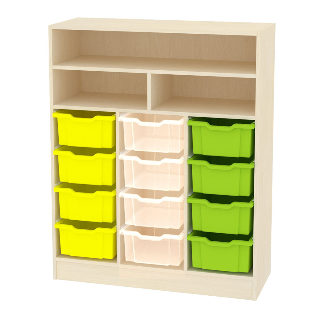 Skříňka je vyrobena z 18 mm DTD desky, která má zaoblenou ABS bezpečnostní hranu o tloušťce 2 mm. Na výběr máte korpus javor nebo buk. Ceny skříněk jsou bez plastových kontejnerů a vodících lišt. Kontejnery a lišty se objednávají samostatně.