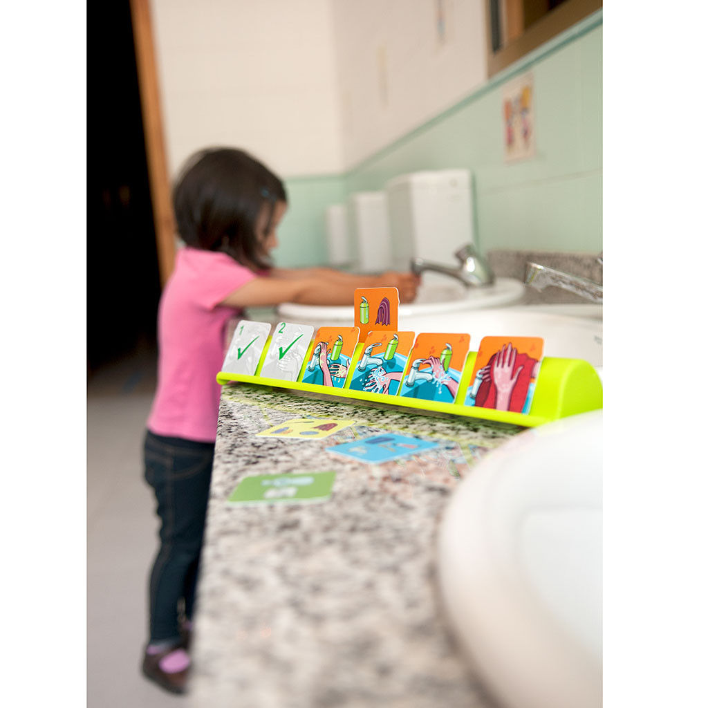 Karty pro vytváření příběhů. Karty s momenty souvisejícími s různými oblastmi denní hygieny, které je třeba seřadit v postupném pořadí. Úkolem děti je uspořádat sekvence, povídat o obrazech a vytvořit souvislý příběh. Karty rozvíjejí logické myšlení a verbální projev, umožňují upevňovat návyky a podporují osobní autonomii. Balení obsahuje stojan, 36 plastových karet 5 x 5 cm, 7 sérií (1 série obsahuje 3 až 6 karet), na rubu každé kartičky je obrázek, který pomáhá identifikovat jednotlivé sekvence. Materiál: plast. Věk: 5+.
