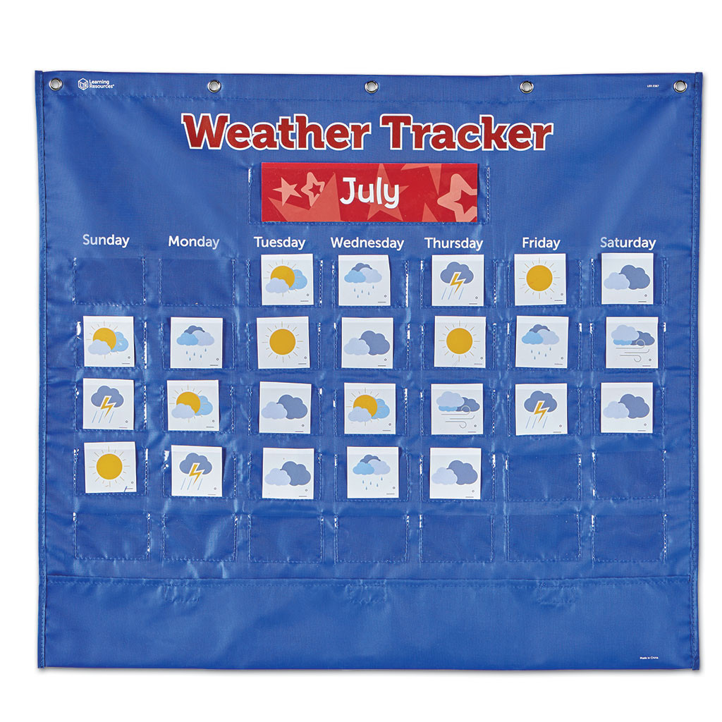 Interaktivní graf s kapsami je připraven pomoci mladým meteorologům dozvědět se o počasí, zda prší nebo svítí sluníčko. Děti používají graf spolu s měsíci a kartami počasí pro sledování počasí podle dne, týdne a měsíce a pozorují, jak se mění roční období. Vložte název měsíce do horní kapsy a poté použijte 93 karet pro sledování počasí pro zobrazení počasí v daný den, ať už je to slunce, mraky, déšť, sníh a další. Obsahuje také průvodce povětrnostními aktivitami s oboustranným pracovním listem. Průvodce aktivitami počasí včetně pracovního listu, jakož i obal jsou vícejazyčné. Balení obsahuje 103 dílků. Rozměr grafu: 68 x 63 cm. Materiál: látka/papír. Věk: 5+.