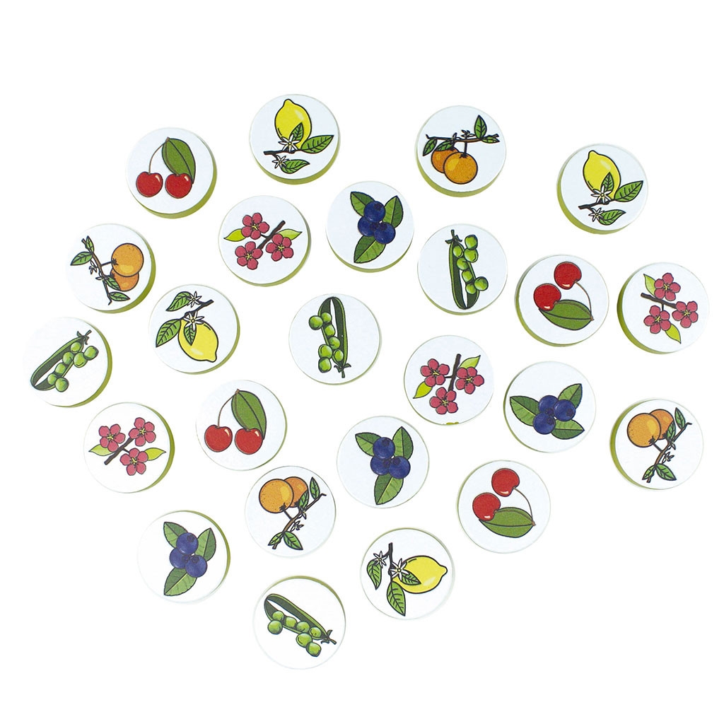 Doprovázejte hladové housenky při hledání ovoce, zeleniny, květin a listů. Která housenka je první plná a promění se v krásného motýla? Barevná memohra, která vyžaduje schopnost reagovat a procvičuje paměť, protože děti si musí pamatovat, kde se skrývá potrava housenky. Také se učí rozpoznat ovoce a zeleninu. Při hře objevují fascinující proces metamorfózy – přeměnu housenky na motýla. Obsah: 24 dřevěných žetonů s krmivem pro housenky, hrací podložka z textilu a gumy na srolování, dřevěná kostka, dřevěná figurka. Rozměry: žeton - Ø 3 cm, podložka - 69 x 34 cm. Materiál: dřevo/textil/guma. Věk: 4+.