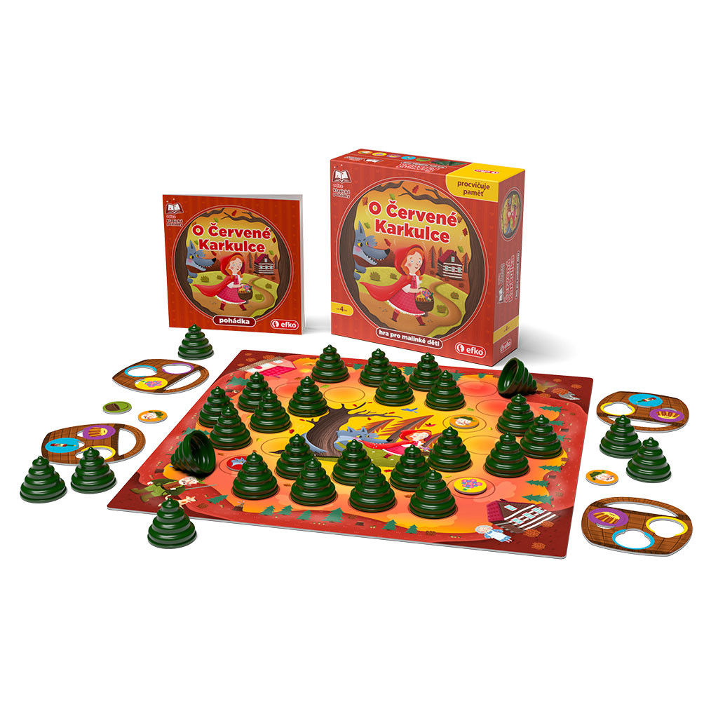 Pomůžeš Červené Karkulce naplnit košíček pro babičku? Ale pozor! V temném lese číhá mlsný vlk. Hra pro 2 – 4 hráče s jednoduchými pravidly rozvíjí jemnou motoriku, postřeh a paměť. Hra je svižná, napínavá a díky jednoduchosti ji pochopí i ti nejmenší. Součástí balení je i pohádka v češtině a slovenštině – můžete si ji přečíst před spaním nebo před hrou samotnou. Hra je vyrobena v ČR z kvalitních a bezpečných materiálů. Balení obsahuje: herní plán 34 x 34 cm, 30 plastových stromků, 4 košíky, 34 žetonů, pohádku v CZ/SK, návod. Rozměry balení: 18 x 18 x 6 cm. Materiál: karton/plast. Věk: 4+.