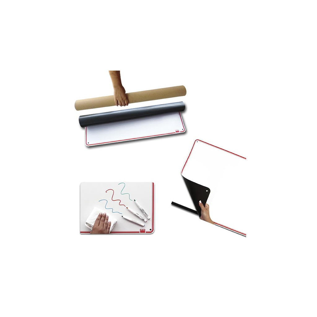 Tabule je vyrobena z lehkého flexibilního materiálu, který umožňuje snadné srolování kvůli snadné přepravě a skladování. Povrch tabule je magnetický, což umožňuje připevnit obrázky nebo jiné magnetické předměty. Tabule je navíc popisovatelná smazatelnými fixy, což vám umožňuje snadno psát a mazat. Dá se zavěsit na zeď nebo položit na rovný povrch. Součástí balení jsou také 4 magnetické pásky pro upevnění tabule na zeď. Rozměry: tabule 70 x 50 cm, magnetické pásky 30 x 2 cm. Materiál: magnetická fólie. Věk: 3+.